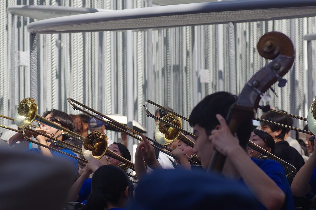 ポルトガル館に差し掛かった所で、生楽器の音が・・・池田高校吹奏楽部による演奏でした。