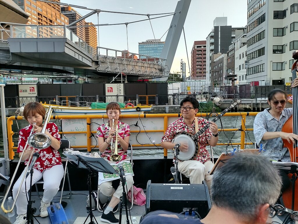 今回はコンボでトロンボーン、トランペット、バンジョー、ウッドベースでした。