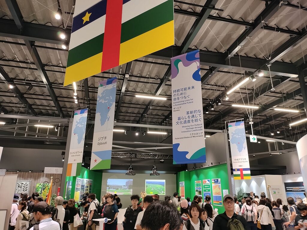 様々な国が共同で出展?しているようです。あまり待たなくても入れますが、入ってからが混雑しすぎているのと、一方通行ではないのでかなり混乱します。混雑が苦手な人は覚悟して行った方がいいです。私は頭が痛くなったので、途中で脱落しベンチで休憩していました。