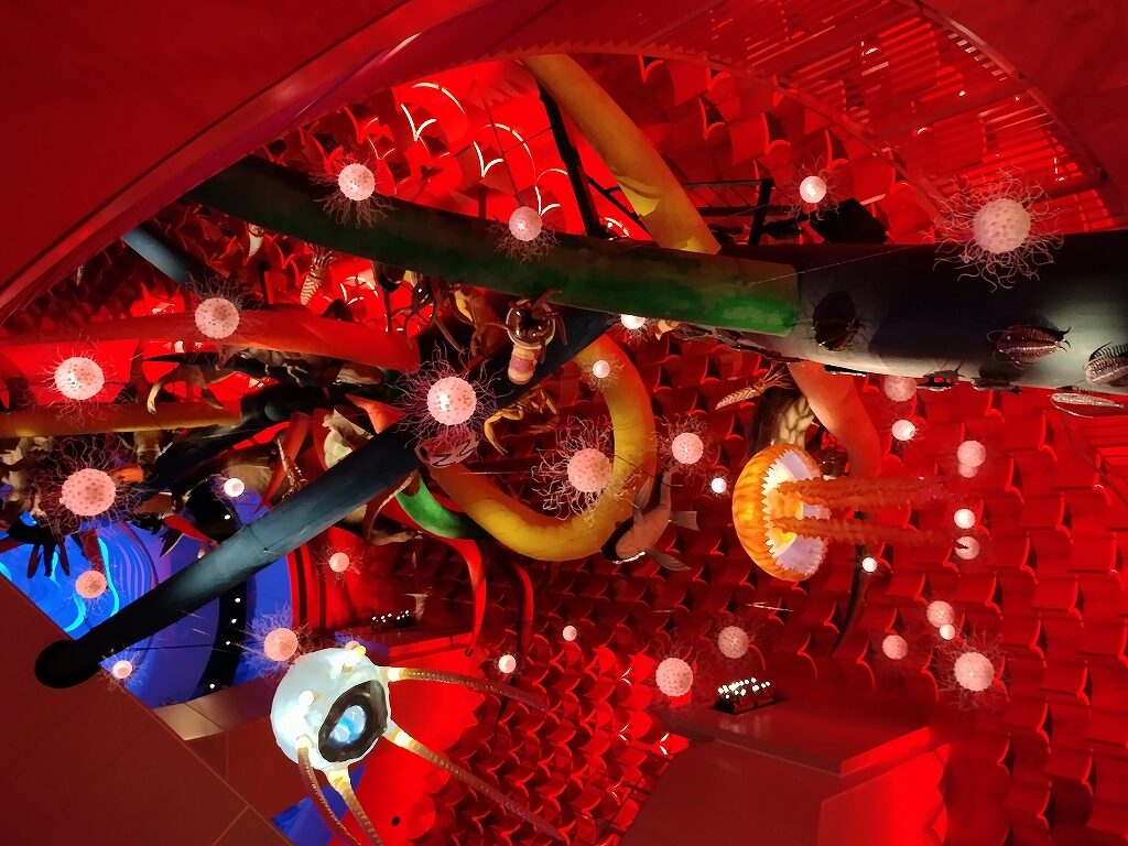 入場者にマスコット「サーキュラー」が渡されます。日本語を選択し(他は英語・ドイツ語)頭をセンサーに近づけると、その場所の解説をしてくれました。このアイデアいいですね。